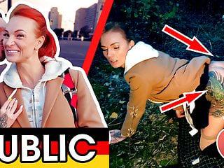 Auf dem Klo in der Öffentlichkeit gefickt – ein deutsches Amateurgirl beim Outdoorsex